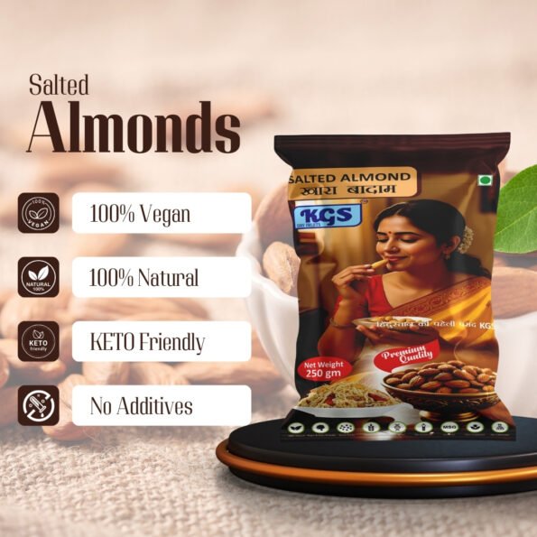 Meet KHARA BADAM GOGO – a truly exquisite offering from SAIYAM-SANJAM. Our premium salted almonds come in a bold size and are carefully selected and prepared to bring you an unmatched snacking experience. Presented in a convenient 250 gm box, each almond is perfectly salted to enhance the natural nutty flavors, making it an ideal choice for both health-conscious snackers and indulgence seekers alike.