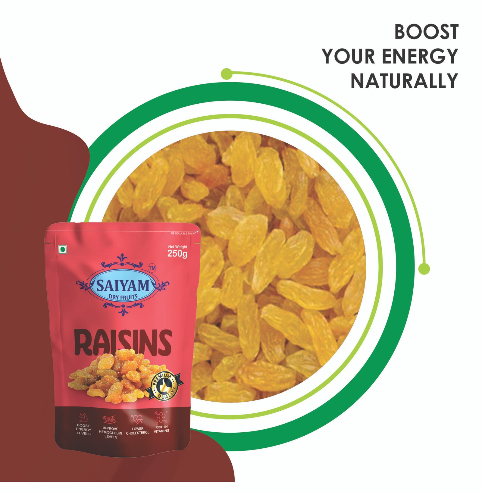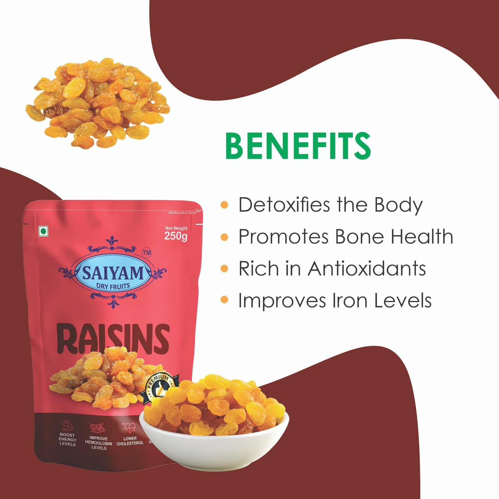- Raisins naturally include fiber, potassium, and antioxidants that are beneficial to your overall health. It helps with digestion and strengthens immunity.