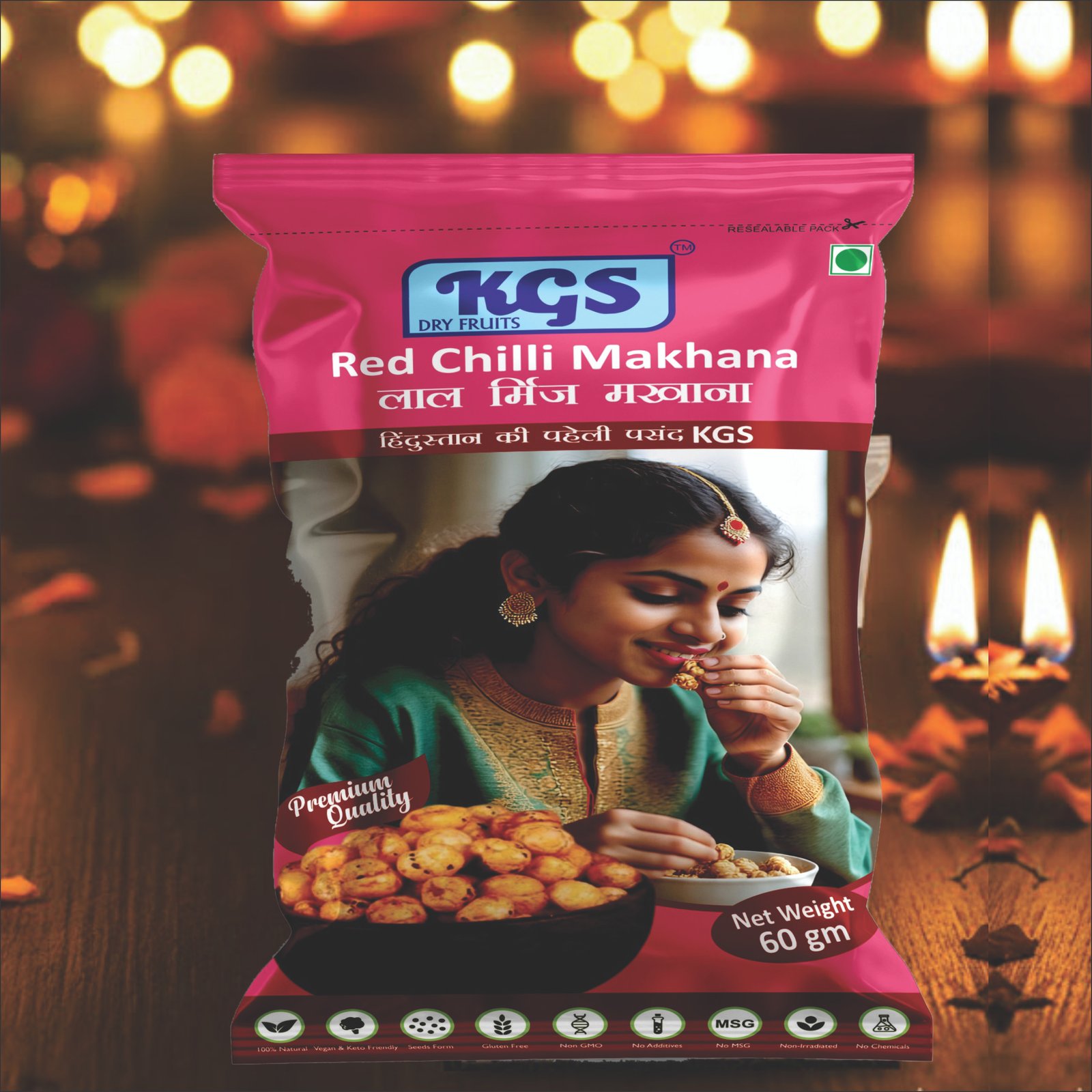 RED CHILLY MAKHANA KGS EXTRA HEAVY HD PRIMIUM QUALITY (60GM POUCH)